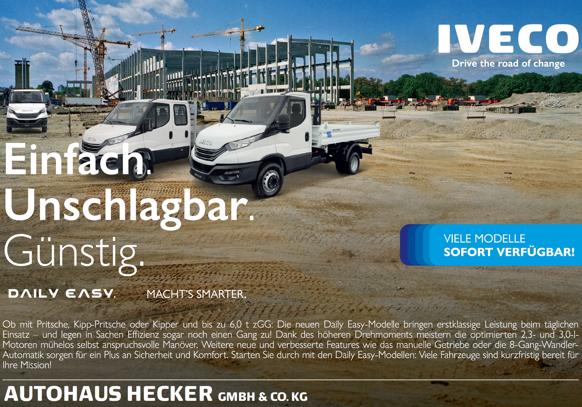 Jetzt ist DIE Gelegenheit. Passend zum Saisonstart haben wir verschiedenste Iveco Daily Modelle sofort verfügbar auf Lager. Für alle Aufträge vom 22.03. bis 30.04.2024 gibt es 1.000 Euro netto als Zusatzrabatt auf den ausgezeichneten Preis (gilt für lagernde Fahrzeuge)